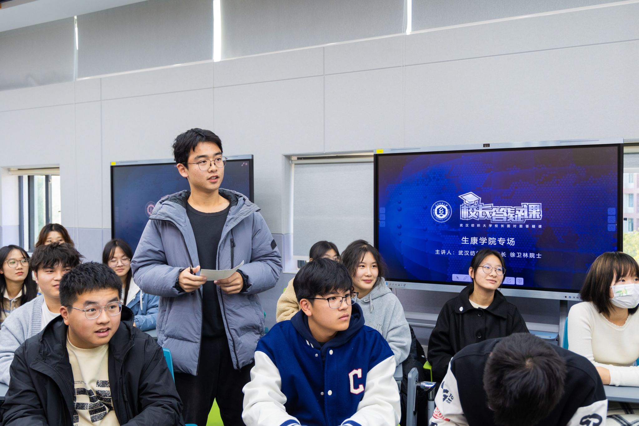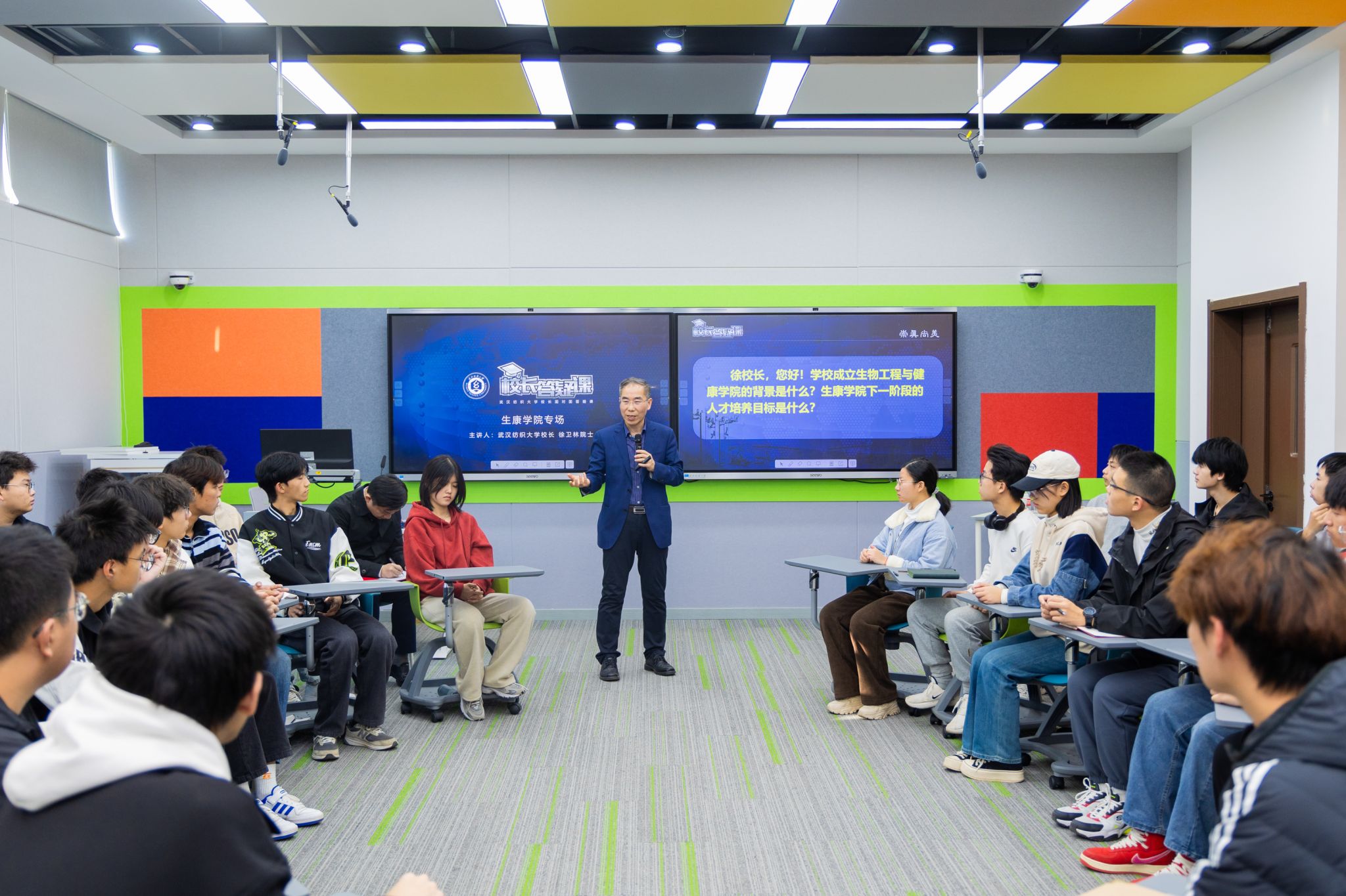 学生代表,就学业困惑、科研活动、职业规划等相关事项现场提问。徐卫林表示,同学们需要在评判自我,认识自我定位的前提下制定大目标和大方向,针对兴趣爱好丰富课外生活、开展课外活动。同时,他鼓励学生追求课堂知识和实验室科研实践的平衡发展,利用课余时间进入实验室,培养创新思维和科研素养。此外,针对学生在职业规划方面的困惑,徐院士邀请了张院长为大家作更详细的讲解。张院长表示,生物工程专业的学生在毕业之后可以从事的工作领域十分广泛。对于毕业生来说,找到自己真正感兴趣并能够持之以恒的工作方向是非常重要的。