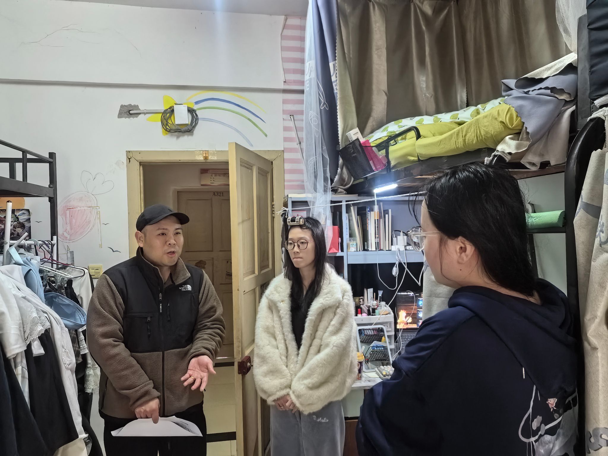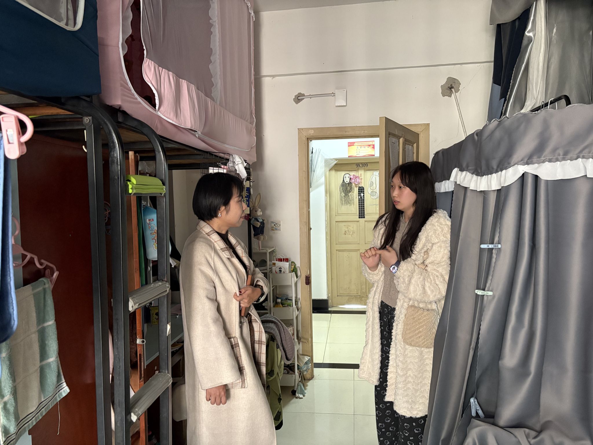 走访过程中,学院领导与同学们进行了亲切交流。在本科生宿舍,周闰禄详细询问了同学们的假期生活、返校适应情况及新学期的学业规划。他叮嘱同学们要尽快调整作息,以饱满的精神状态投入到新学期的学习生活中,同时要注意宿舍用电安全,保持寝室卫生整洁,共同营造安全、文明、和谐的住宿环境。