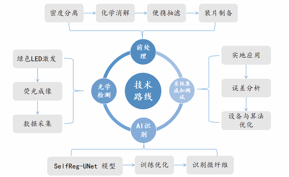 “塑战速决”项目旨在开发一种基于人工智能技术的便携式微塑料纤维检测系统,实现对西部地区水样中微塑料纤维的原位快速检测,为西部环境保护提供有力的技术支撑。项目团队创新性地将高分辨率图像传感器与笔记本电脑相结合,构建了一套轻便易携的检测设备。该设备体积小巧、重量轻盈,便于在野外环境中携带和操作,解决了传统检测设备笨重、不便移动的问题。同时,高分辨率成像技术能够清晰捕捉微塑料纤维的细微特征,包括形状、颜色和纹理等,大大提高了检测的准确性和分辨率。